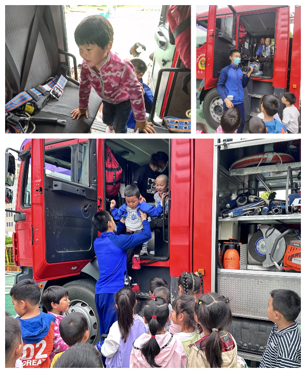 期间,孩子们在消防员叔叔和老师的帮助下登上了高大的消防车,通过观察、提问、消防员叔叔地讲解,对消防车有了进一步的了解。