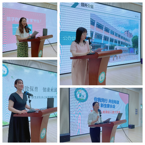首先,胡园长就尚鸿幼儿园的园所情况、办学理念、小班各班教师安排、校园文化等进行了整体介绍。副园长夏老师为家长详细地介绍了幼儿园开设的课程,并就家长最为关心的幼儿在园一日生活作息时间、内容安排等作了详细的解读。接着,保育办主任陈老师对幼儿园的保育保健工作、家长需要配合的事项、幼儿营养膳食工作等进行了详细地介绍。最后,总务办主任林老师就幼儿园安全、幼儿上下学接送制度、收费制度等方面进行了阐述。