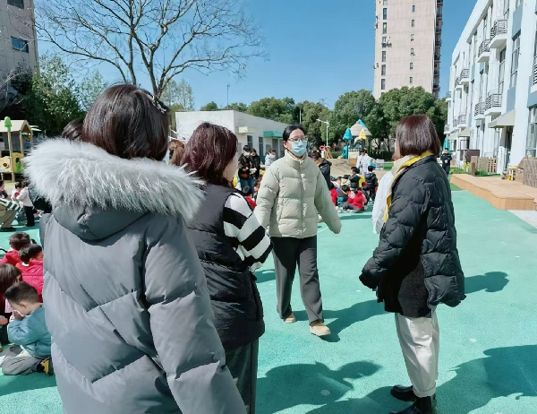 抵达集结点后,各班教师第一时间清点幼儿人数,并逐级向副园长李老师汇报本班撤离情况。
